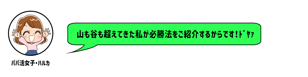 長く太く助けてくれるパパを見つけるためにも、まずは今日紹介したことをヒントに第一歩を踏み出していただいて、ゆくゆくはたくさんのパパに支援していただいてたっぷりお手当をいただける女子になりましょう(笑)