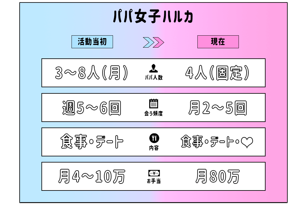 パパを始めた当初(まだ定期パパがいない時期)と