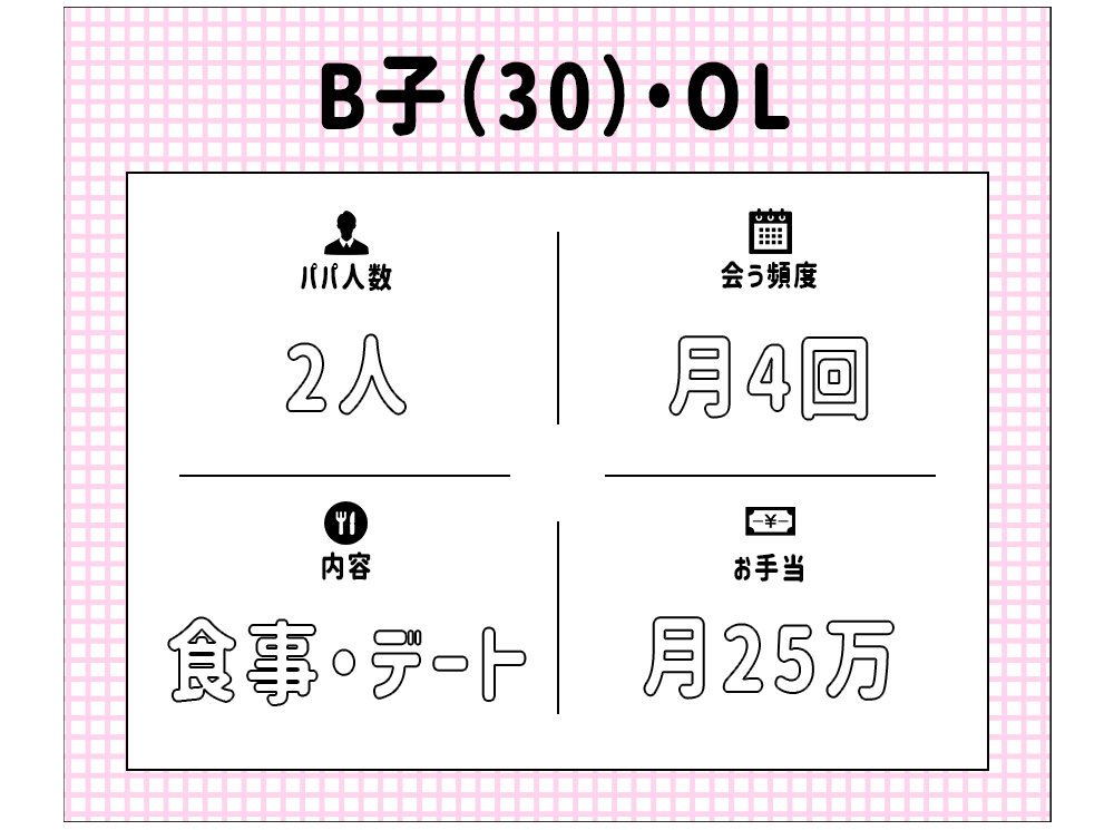 相性が合うパパを見つけるまでは半年~1年程かかりましたが、地道な開拓のおかげで、今では裕福な暮らしが出来て満足しています。
